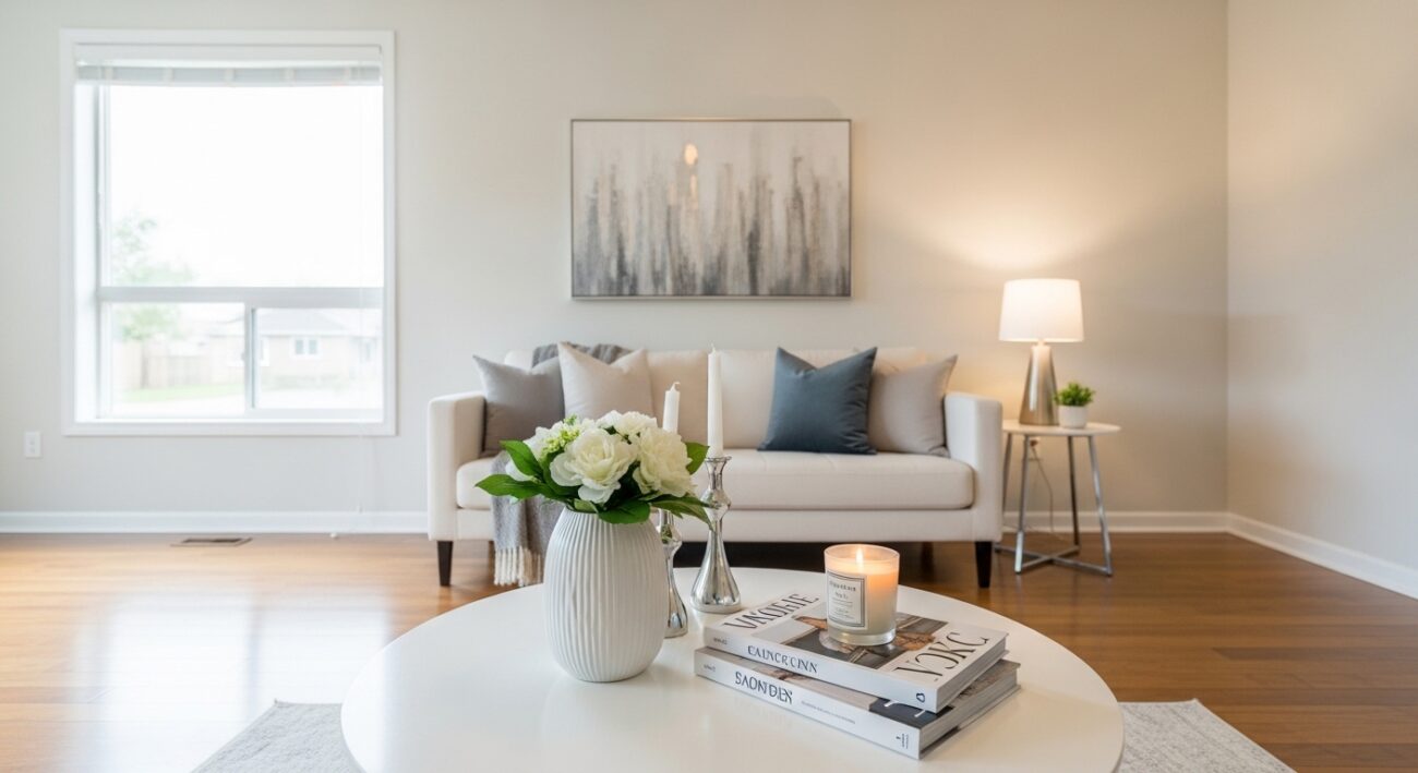 Home staging to sztuka prezentacji, która podkreśla atuty nieruchomości i maskuje drobne niedoskonałości, np. poprzez neutralną paletę barw, odpowiednie ustawienie mebli i stonowane dodatki, co zwiększa jej atrakcyjność.